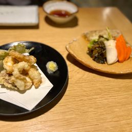 Sushi Taro is a fantastic spot for sushi enthusiasts and those who enjoy cooked seafood alike. The menu offers plenty of options, ensuring there's something for everyone. To start, the cooked mixed vegetables were a great choice--well-seasoned and a perfect complement to the meal. The seaweed and radish dish was both refreshing and warming, setting a nice tone for the evening. The 6-piece Poke-mon roll and shrimp tempura roll were both delicious and satisfying. The two 6-piece rolls were plenty for a dinner. The rice was perfect sushi rice, adding to the already flavorful fish and sauce. We also sampled the rainbow roll, which featured a fun and vibrant mix of fish, and the salmon avocado roll, a classic favorite. Our waitress was attentive and made sure our drinks were never empty. We enjoyed a cute booth right inside, which was perfect for a cozy dinner for two.